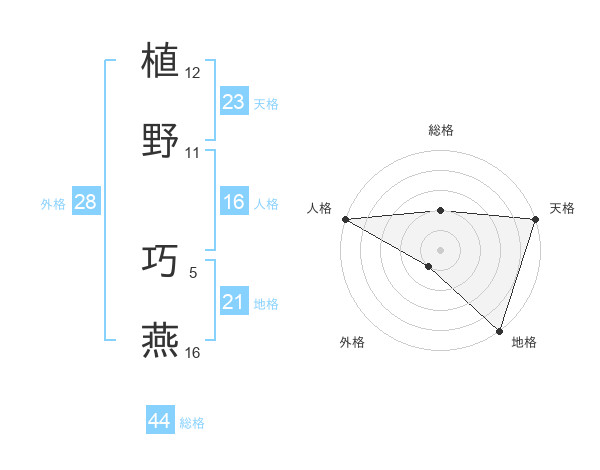 植野 巧燕さんを姓名の画数から五運を鑑定
