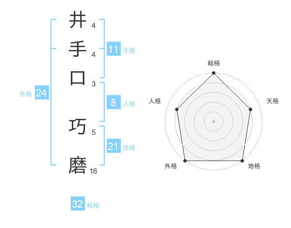 井手口 巧磨さんの総格は32画の5点!