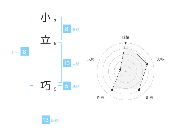 小立 巧さんの総格は13画の5点!