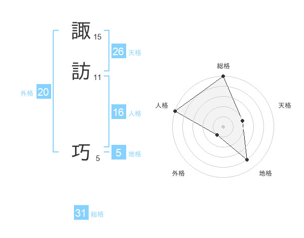 諏訪 巧さんを姓名の画数から五運を鑑定