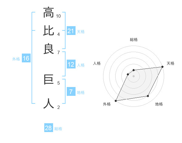 高比良 巨人さんを姓名の画数から五運を鑑定