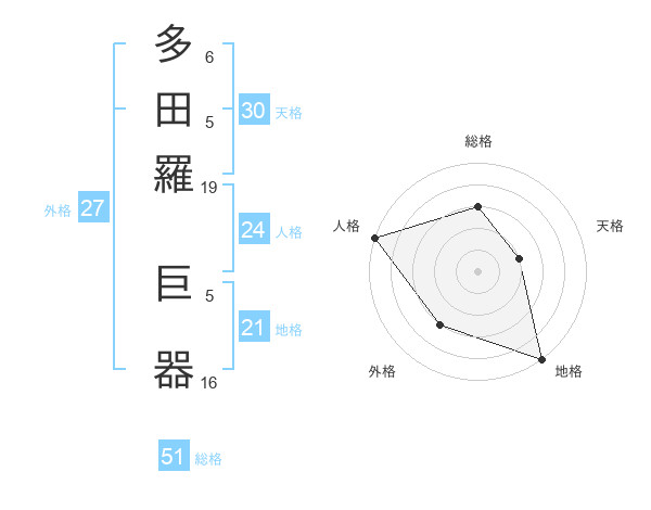 多田羅 巨器さんを姓名の画数から五運を鑑定