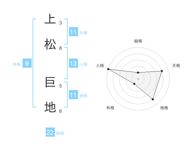 上松 巨地さんの総格は22画の1点!