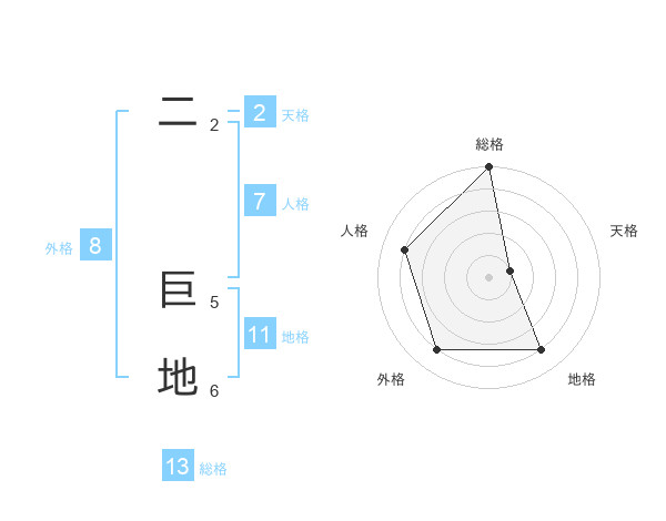 二 巨地さんの総格は13画の5点!