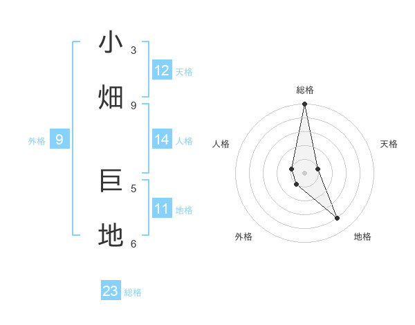 小畑 巨地さんを姓名の画数から五運を鑑定