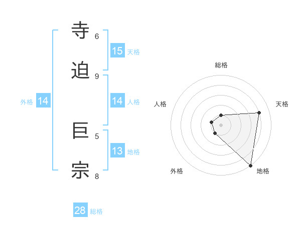 寺迫 巨宗さんの外格は14画の1点!