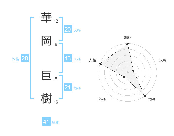 華岡 巨樹さんを姓名の画数から五運を鑑定