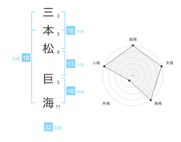 三本松 巨海さんを姓名の画数から五運を鑑定