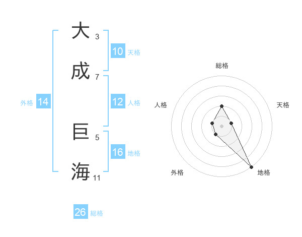 大成 巨海さんの総格は26画の2点!