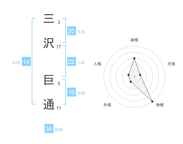 三沢 巨通さんの地格は16画の5点!