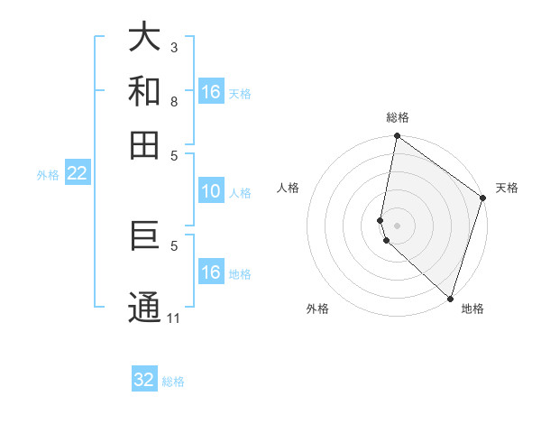 大和田 巨通さんを姓名の画数から五運を鑑定