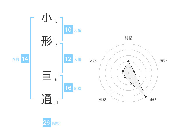 小形 巨通さんの総格は26画の2点!