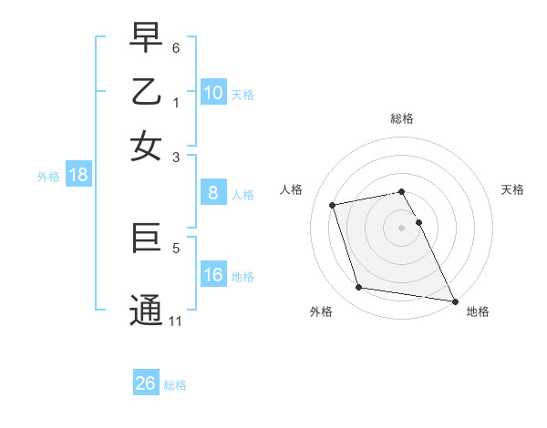 早乙女 巨通さんを姓名の画数から五運を鑑定