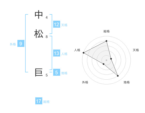 中松 巨さんの総格は17画の4点!