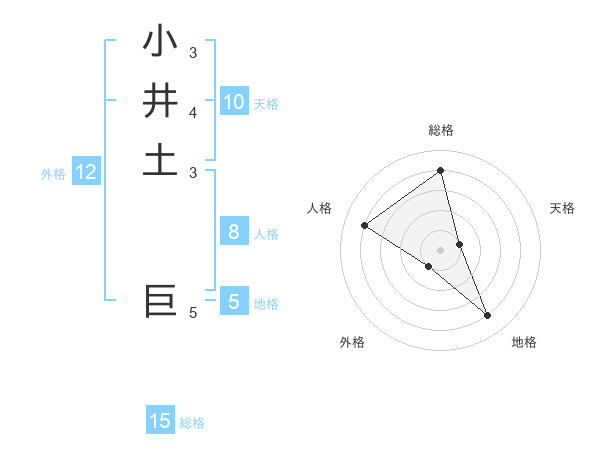 小井土 巨さんの総格は15画の4点!