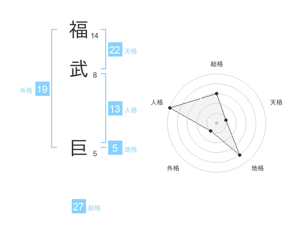 福武 巨さんを姓名の画数から五運を鑑定