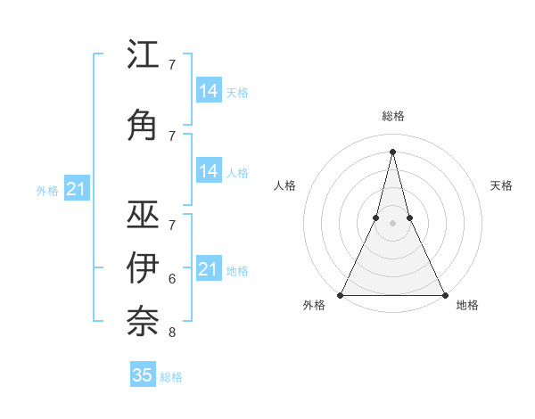 江角 巫伊奈さんを姓名の画数から五運を鑑定
