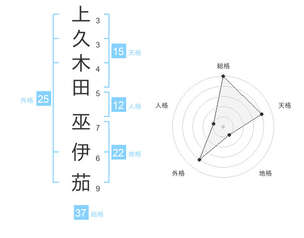 上久木田 巫伊茄さんを姓名の画数から五運を鑑定