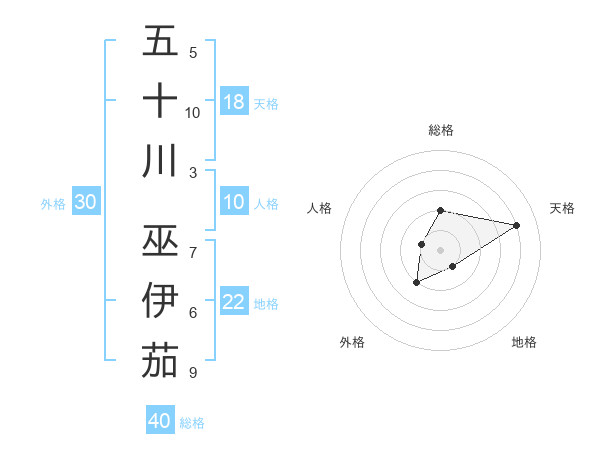 五十川 巫伊茄さんを姓名の画数から五運を鑑定