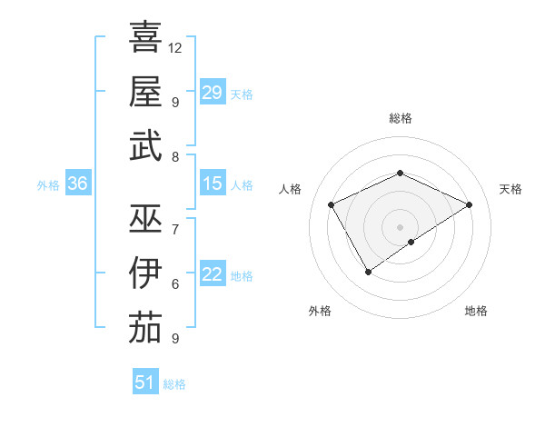 喜屋武 巫伊茄さんの総格は51画の3点!