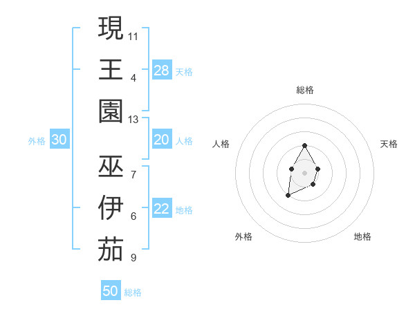 現王園 巫伊茄さんを姓名の画数から五運を鑑定