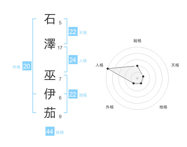 石澤 巫伊茄さんを姓名の画数から五運を鑑定