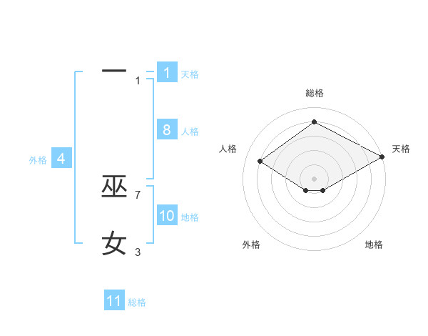 一 巫女さんの総格は11画の4点!