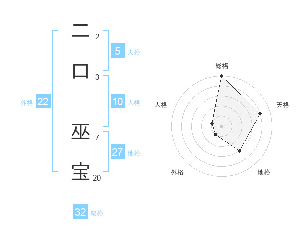 二口 巫宝さんの総格は32画の5点!