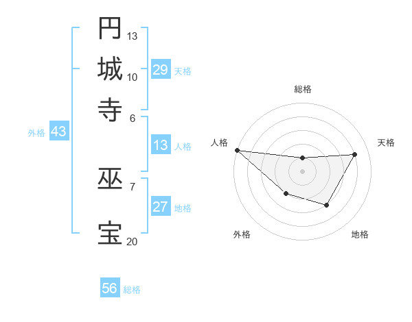 円城寺 巫宝さんの外格は43画の2点!