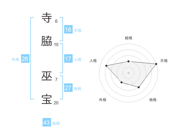 寺脇 巫宝さんの天格は16画の5点!