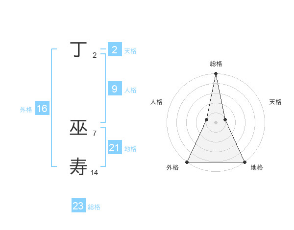 丁 巫寿さんの総格は23画の5点!