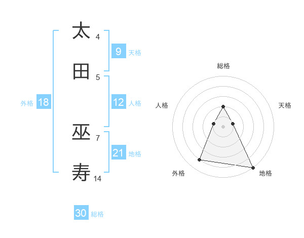 太田 巫寿さんの総格は30画の2点!