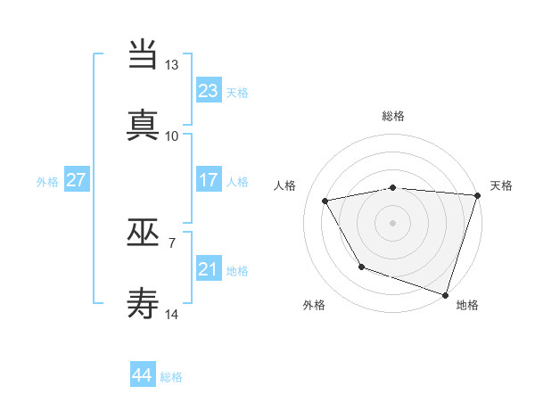 当真 巫寿さんを姓名の画数から五運を鑑定