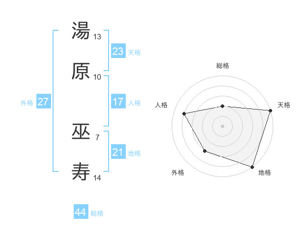 湯原 巫寿さんの天格は23画の5点!