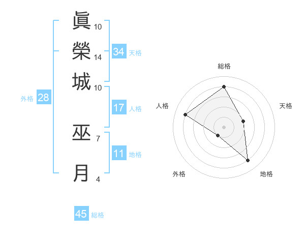 眞榮城 巫月さんを姓名の画数から五運を鑑定