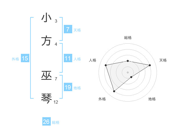 小方 巫琴さんを姓名の画数から五運を鑑定