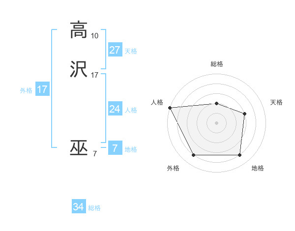 高沢 巫さんの総格は34画の2点!