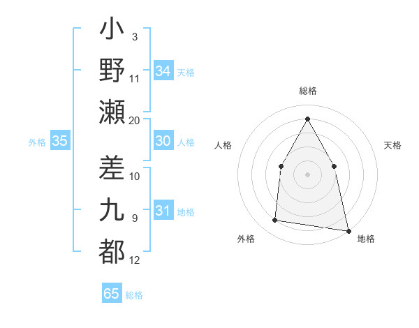 小野瀬 差九都さんを姓名の画数から五運を鑑定