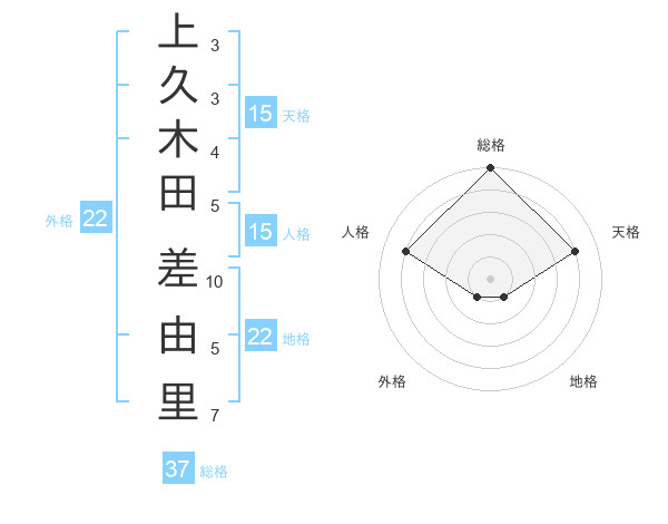 上久木田 差由里さんの総格は37画の5点