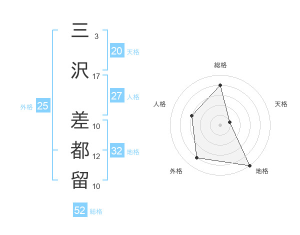 三沢 差都留さんを姓名の画数から五運を鑑定