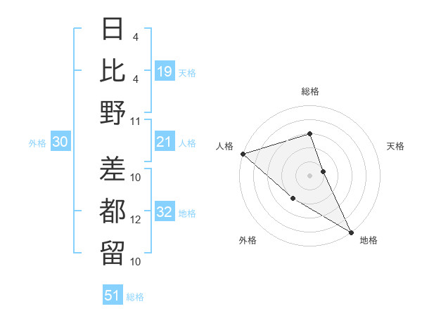 日比野 差都留さんの総格は51画の3点!