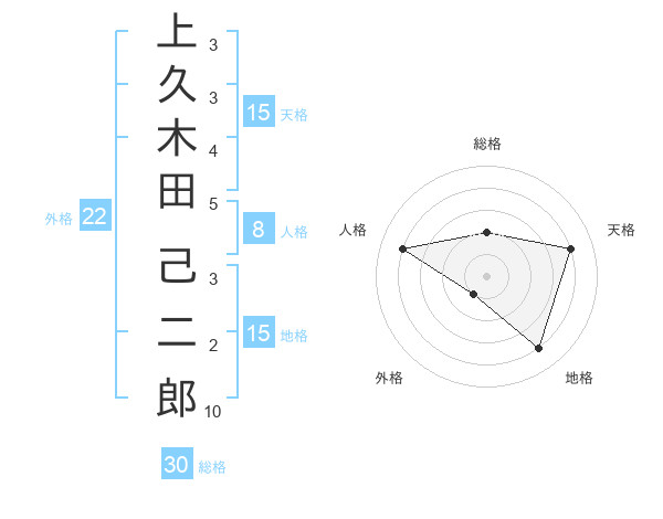 上久木田 己二郎さんの天格は15画の4点!