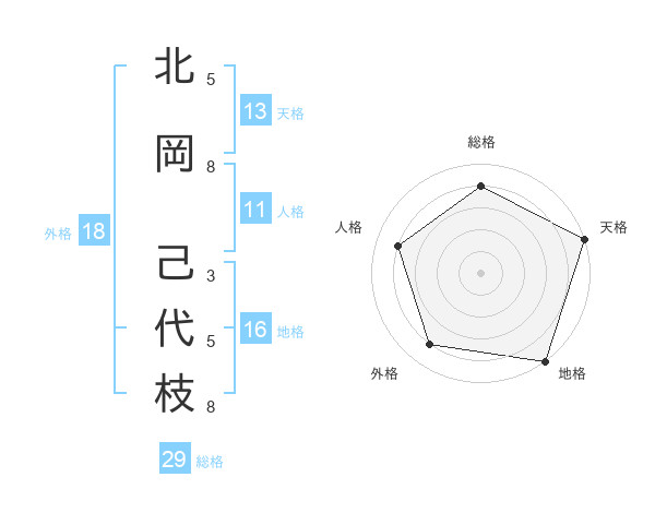 北岡 己代枝さんを姓名の画数から五運を鑑定