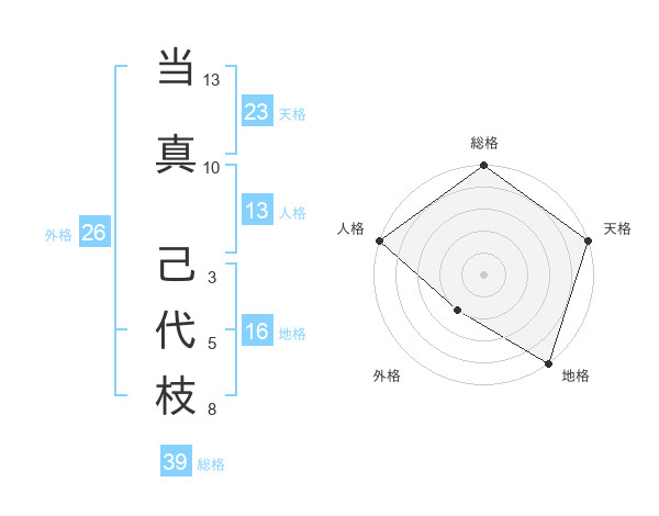 当真 己代枝さんを姓名の画数から五運を鑑定