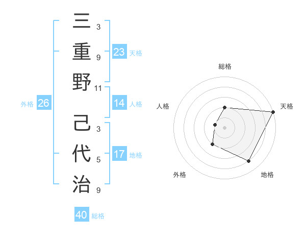 三重野 己代治さんの天格は23画の5点!
