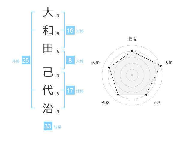 大和田 己代治さんの総格は33画の4点