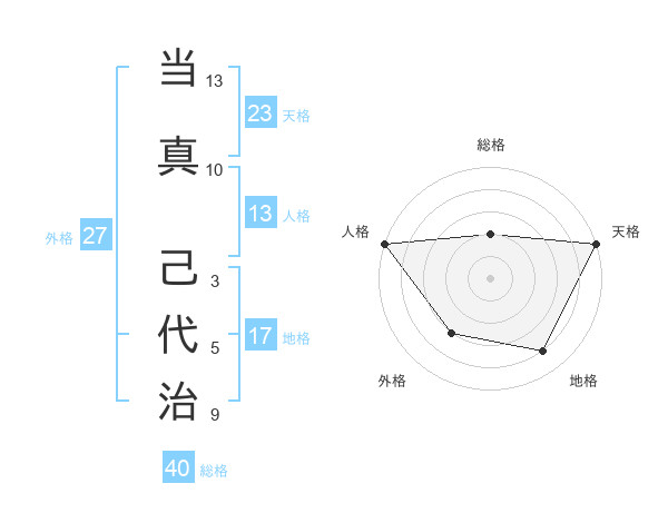 当真 己代治さんの総格は40画の2点!