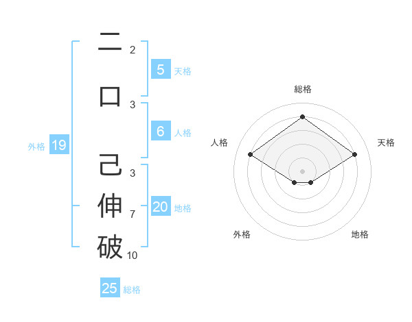 二口 己伸破さんの総格は25画の4点!