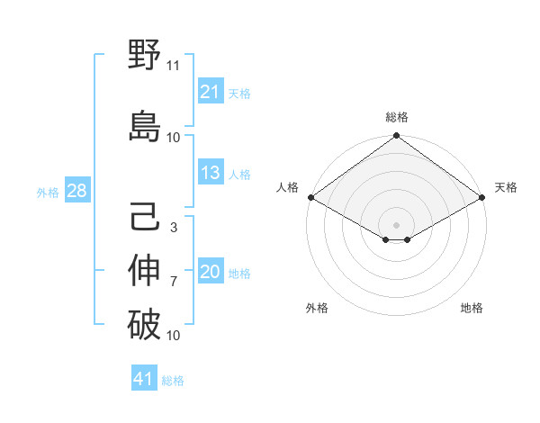 野島 己伸破さんを姓名の画数から五運を鑑定