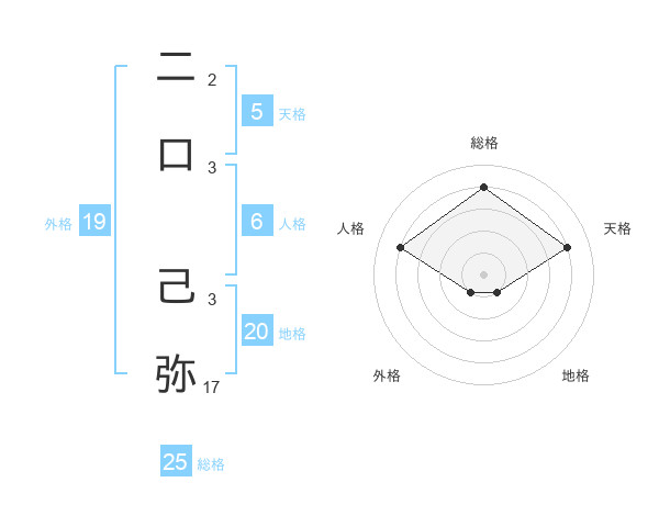 二口 己弥さんの総格は25画の4点!
